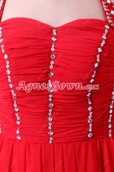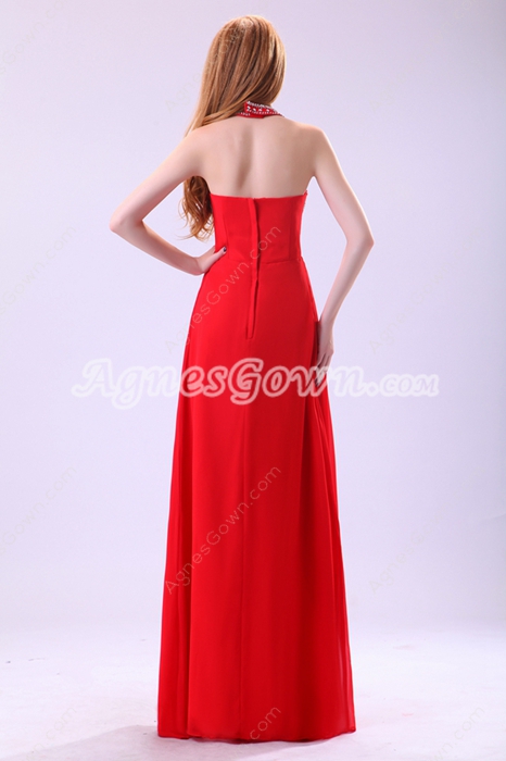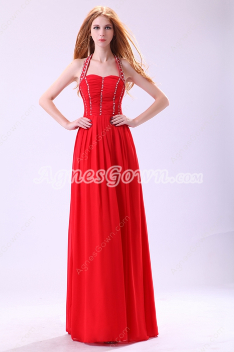 USD $168.00Delicate Top Halter Full Length Red Chiffon Prom Party Dress