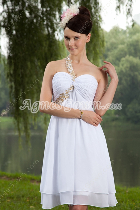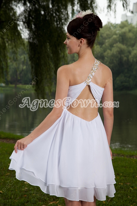 USD $99.00Empire Mini Length One Shoulder White Chiffon Cocktail Dress