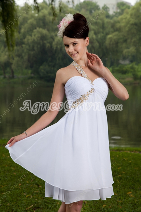 Mini Length White Chiffon Homecoming Dress