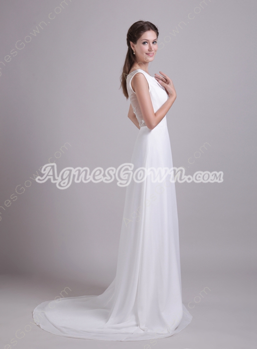 USD $170.00Illusion Back Beach Wedding Dress With Embroidery Beads
