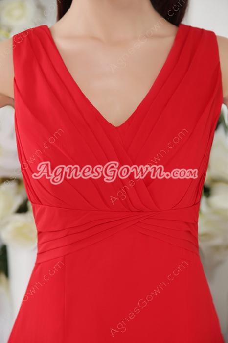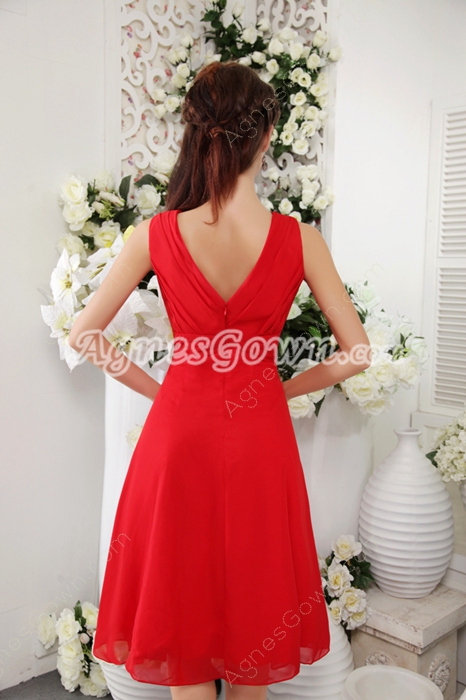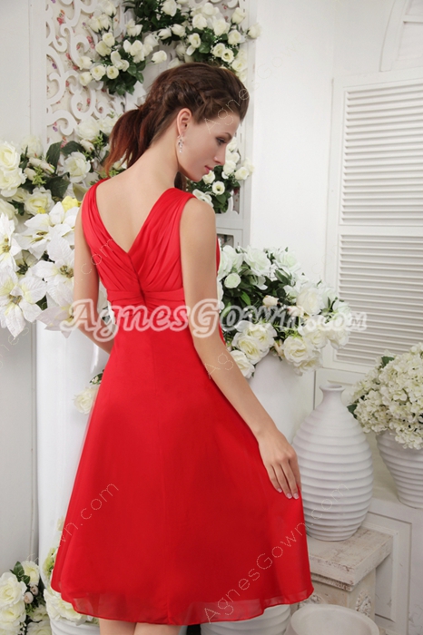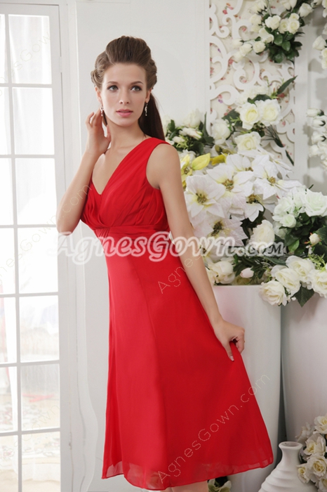 USD $155.00Inexpensive V-Neckline Red Chiffon Knee Length Bridesmaid Dress