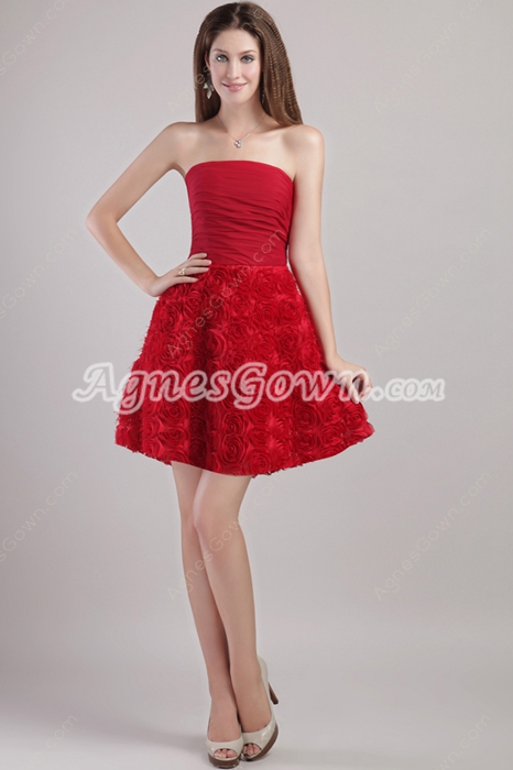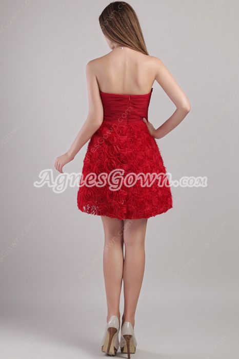 USD $195.00Mini Length Red Floral Sweet XVI Dress