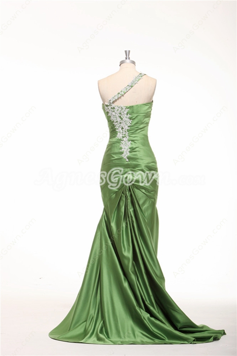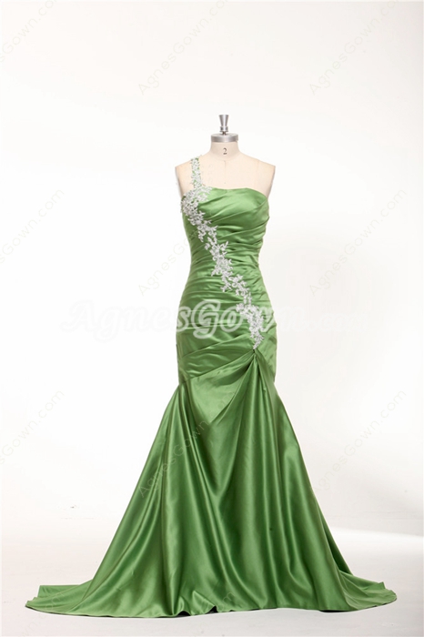 Reviews about One Shoulder Sheath Floor Length Green Prom Dress With Lace Appliques