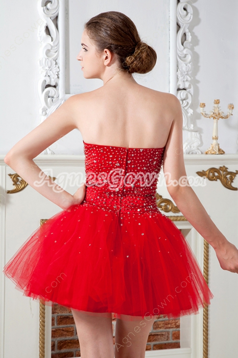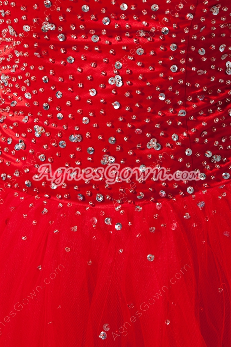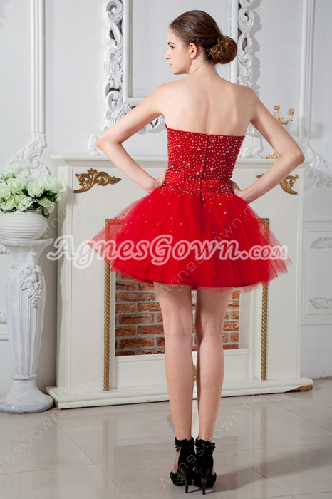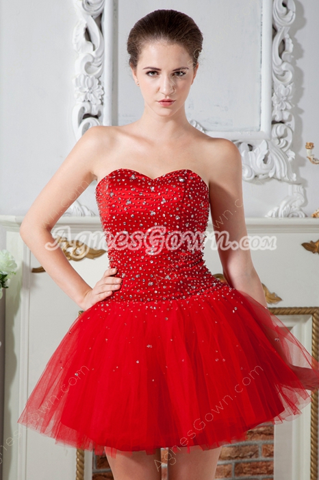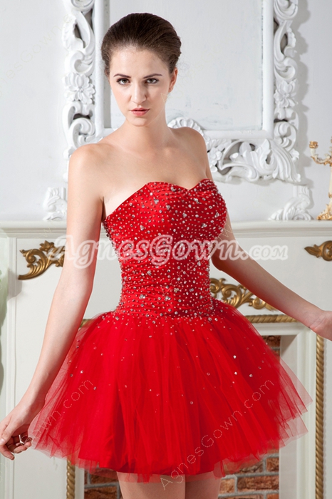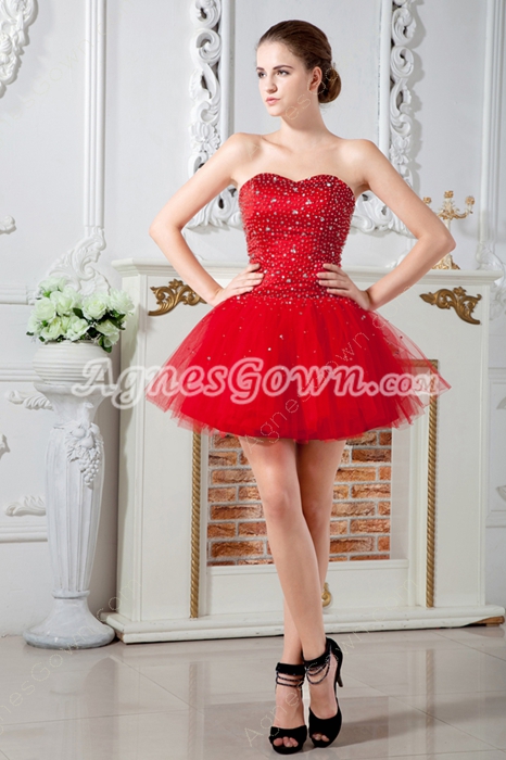 USD $189.00Puffy Mini Length Sweetheart Red Tulle Sweet 16 Dress