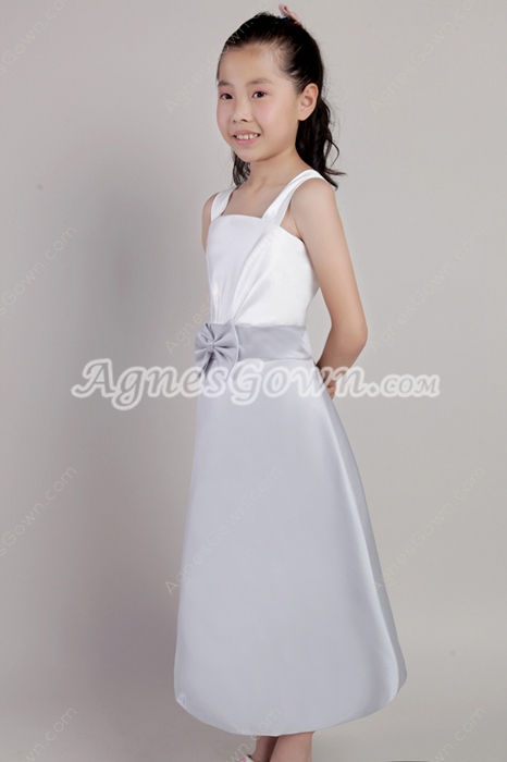 Ankle Length White Tulle Flower Girl Dress With Sequins