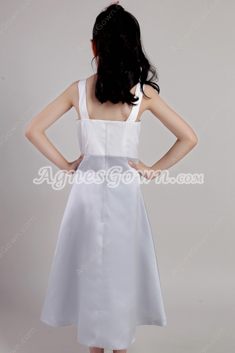 Jewel Neckline Tea Length White Flower Girl Dress With Pearls