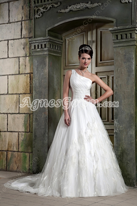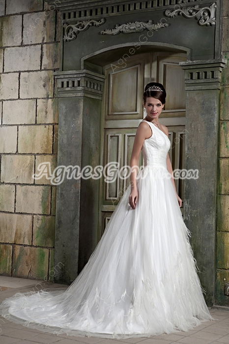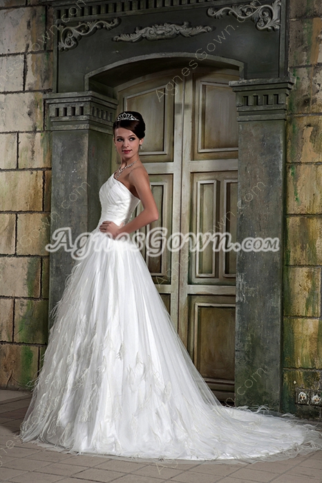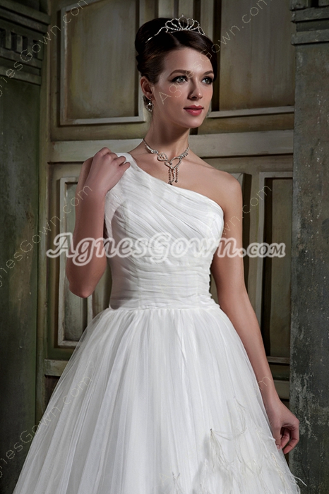 USD $245.00Stunning One Shoulder White Tulle Princess Wedding Dress Woth Feather